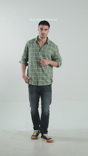 Kemeja Lengan Panjang Regular Racked Green Offwhite