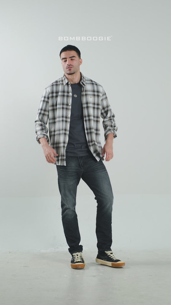 Kemeja Lengan Panjang Regular Raffle White Black