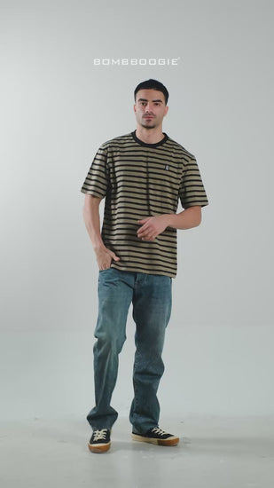 Kaos stripe regular lengan pendek Hinton Bombboogie dibuat dari bahan katun lembut berkualitas tinggi yang menawarkan kenyamanan maksimal untuk pemakaian sehari-hari. Designnya yang simple namun timeless membuatnya mudah dipadukan dengan berbagai outfit, baik untuk tampilan santai maupun kasual yang stylish.