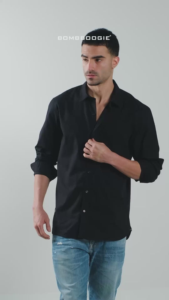Kemeja Lengan Panjang Regular Long Dash Black